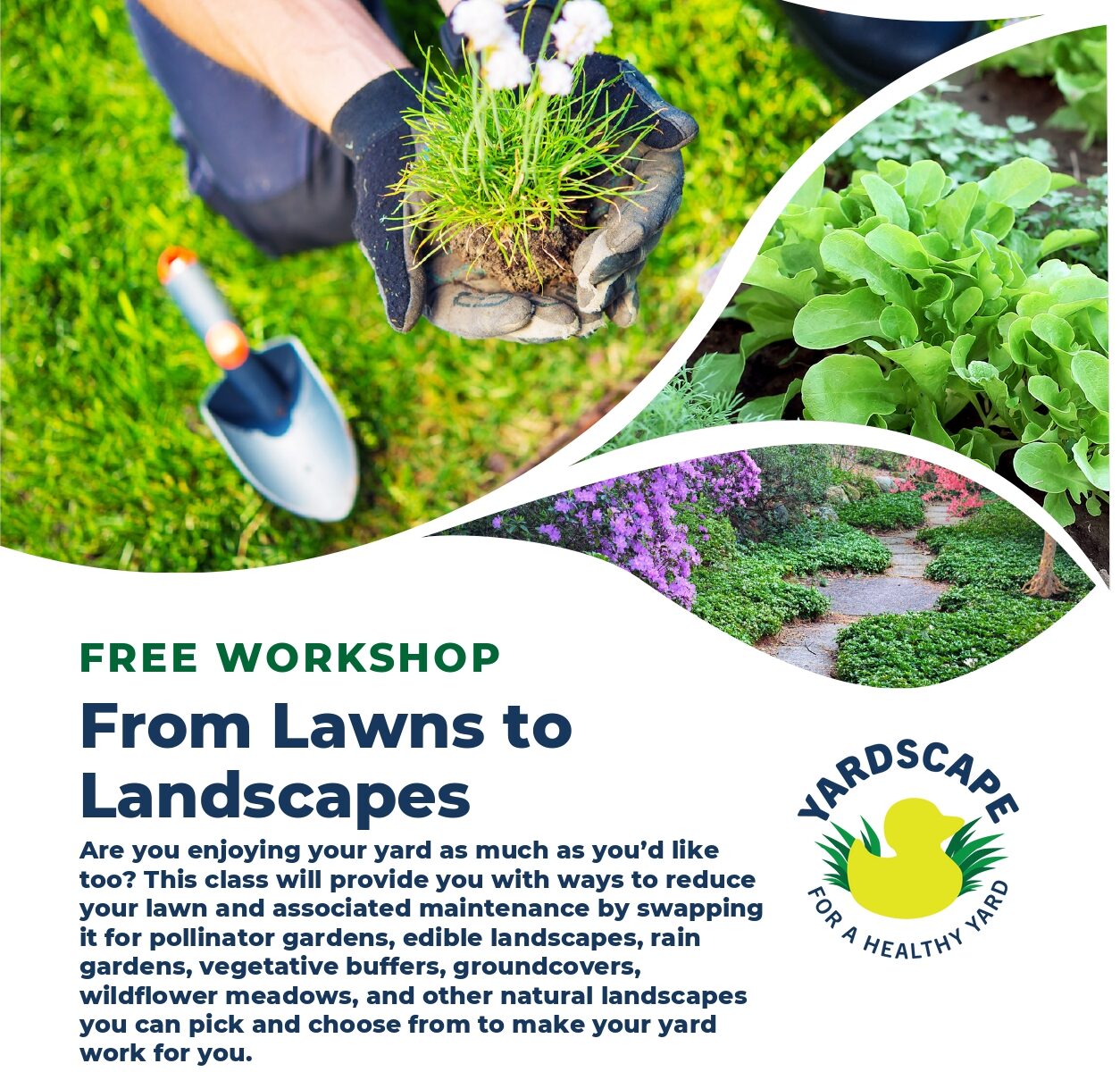 Are you enjoying your yard as much as you’d like too? This class will provide you with ways to reduce your lawn and associated maintenance by swapping it for pollinator gardens, edible landscapes, rain gardens, vegetative buffers, groundcovers, wildflower meadows, and other natural landscapes you can pick and choose from to make your yard work for you.